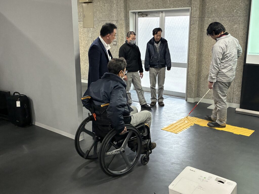 また、視覚障がい・聴覚障がいの方とのコミュニケーションの取り方、車椅子の介助方法など、体験を通じて理解を深める実習も行い、参加したスタッフは、各々の視点から「働きやすい職場環境づくり」を考える機会となりました。
